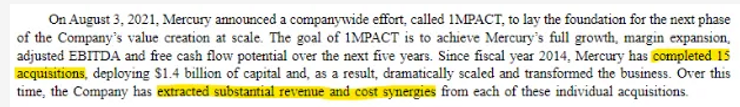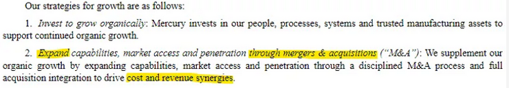 In Mercury System’s most recent Form 10-K, the company states that it has completed 15 acquisitions since 2014: