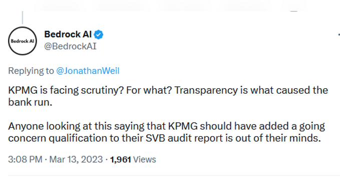 SVB was a going concern at the date of the audit report. My thoughts and prayers are with SVB audit partner, Tarek Ebeid who will be put through hell over the next year for no good reason.