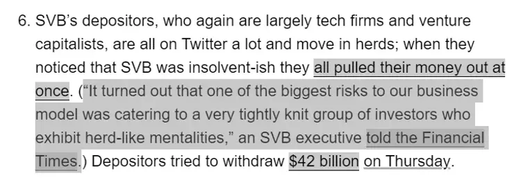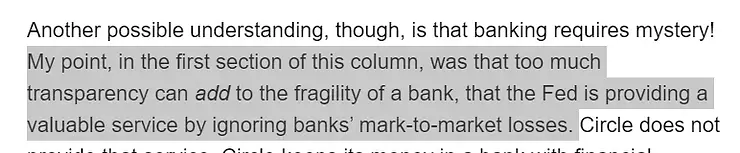 But seriously, the risks to SVB were clearly disclosed. If they weren’t, there wouldn’t have been a run on the bank. I assume that no one other than Andre who wrote this tweet is much upset about the SVB note tie out not matching.