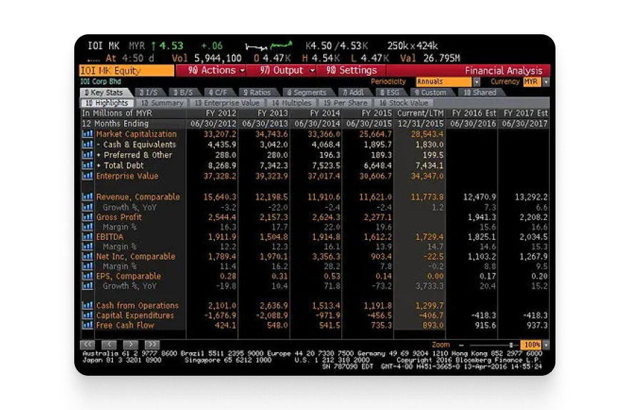 The Bloomberg Terminal (Bloomberg) and S&P Capital IQ (CapIQ) are two of the most comprehensive and widely used investment research tools. Less popular but more cost effective alternatives include FactSet and Refinitiv Eikon. For more options see our post, Free and Low Cost Alternatives to Bloomberg.