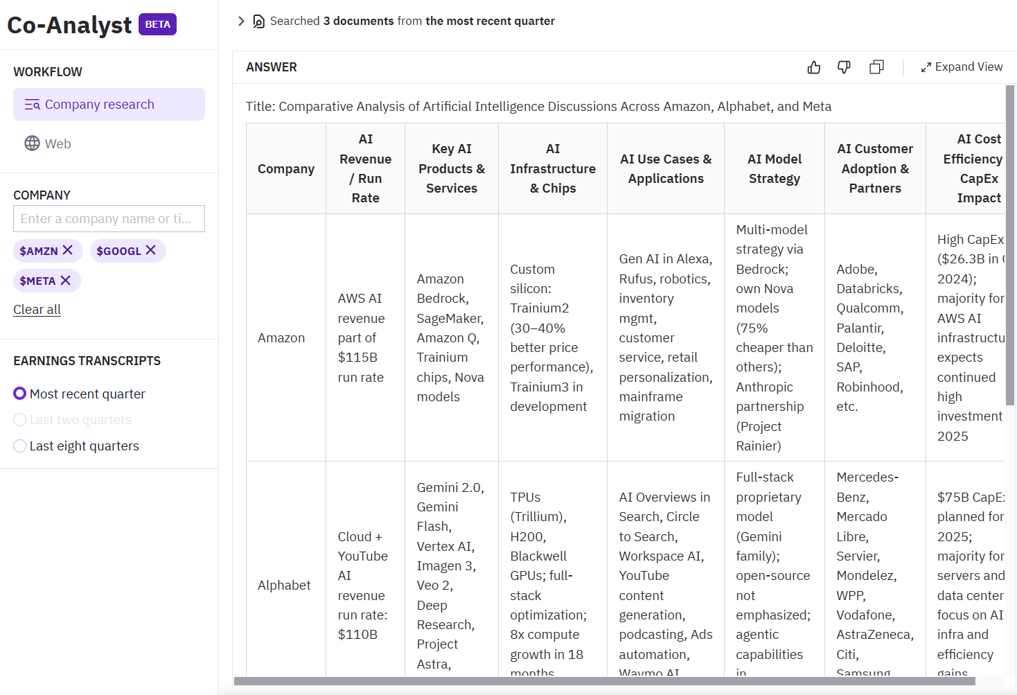 Company: Amazon.com $AMZN, Alphabet $GOOGL, Meta $META | Most recent quarter