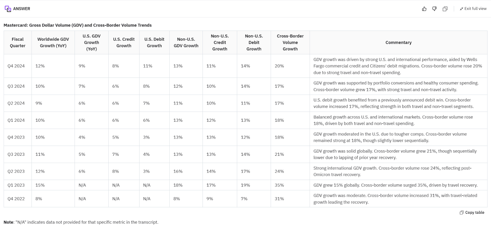 Company: Mastercard $MA | Last eight quarters