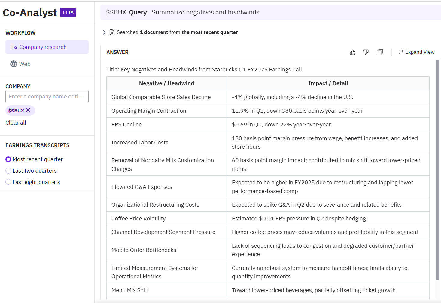 Company: Starbucks $SBUX | Most recent quarter