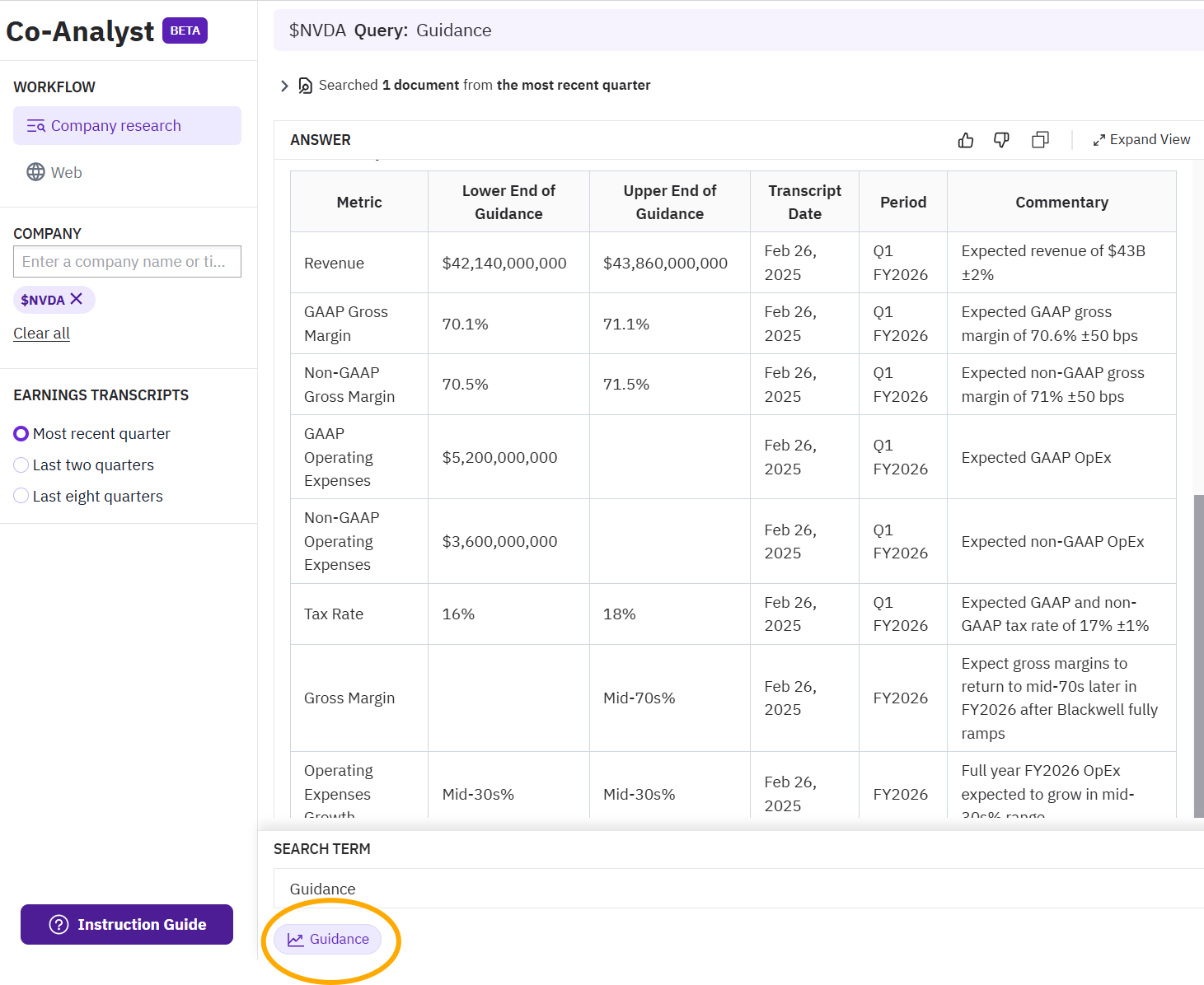 *Notice that the Co-Analyst accurately calculates the lower and upper end of guidance from the source: