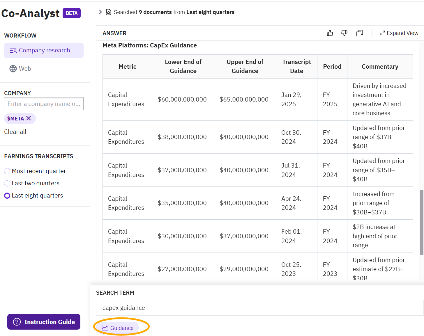 Search term: CapEx guidance | Guidance selected