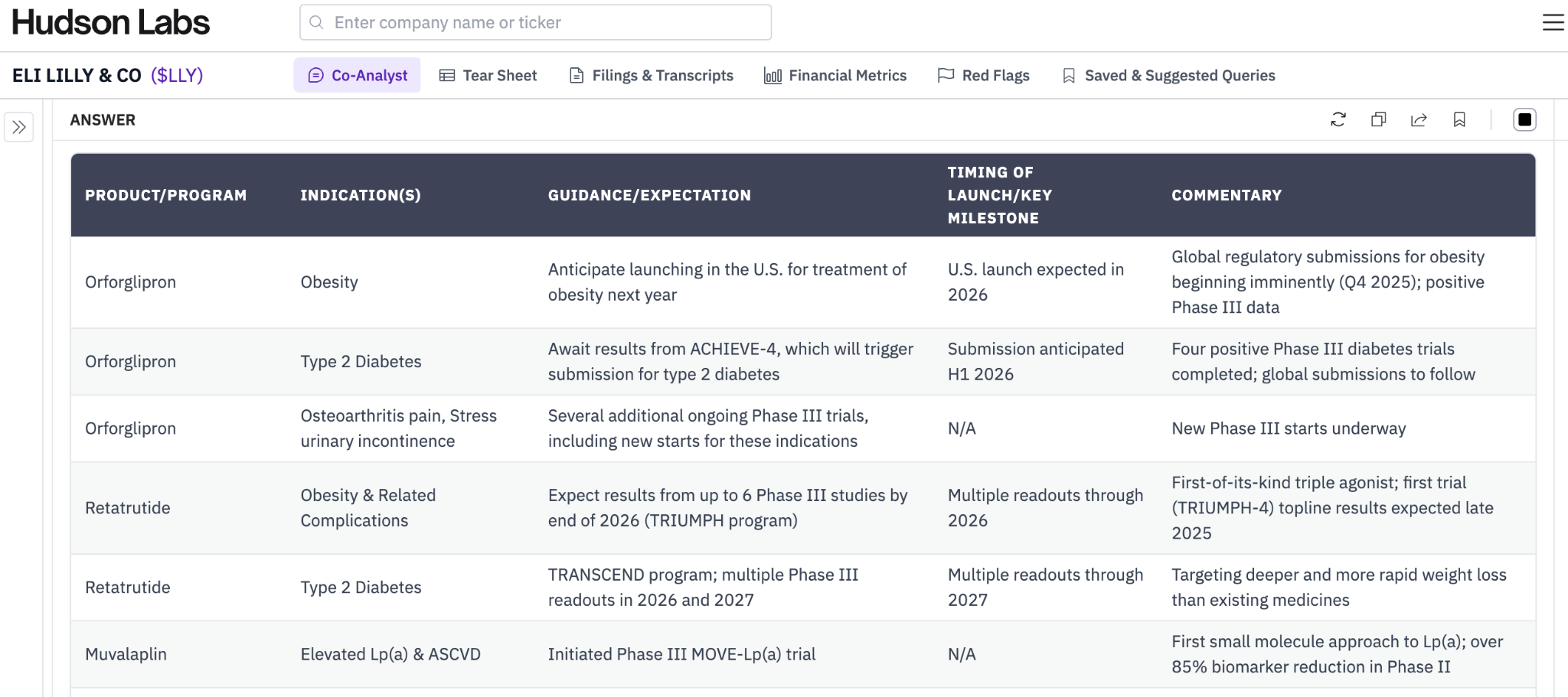 Sample report: Product roadmap updates at Eli Lilly