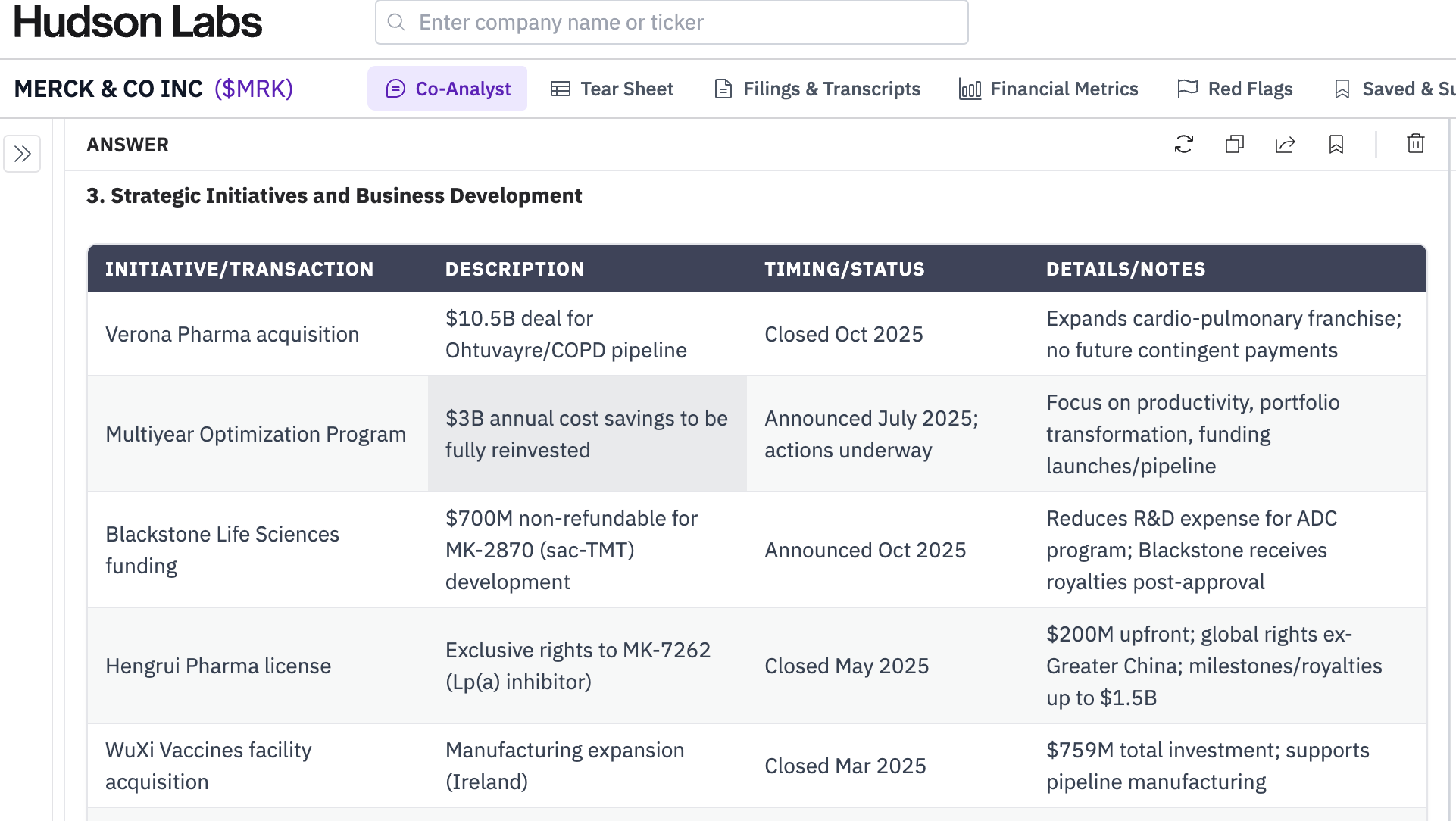 Sample report: Strategic updates at Merck & Co.