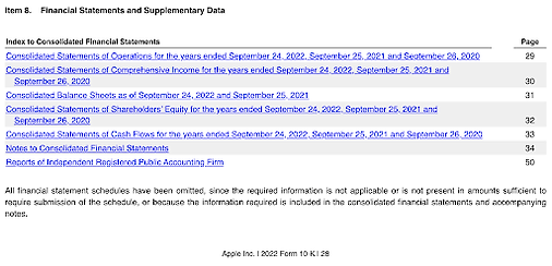 For example, in Apple’s Form 10-K for the year ended September 24, 2022, the audit report appears after the Notes to the Consolidated Financial Statements. Take a look at our post, “How to become an EDGAR power user”, for instructions on how to find a 10-K annual report.