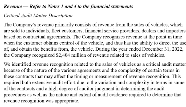 CAMs are sometimes confused with material control weaknesses but are, in fact, very different. The word “critical” might confuse some readers. CAMs are not an indicator of a problem with the company’s processes or financial reporting, rather they are crucial areas of the audit. We invite you to learn more about CAMs in our blog post: What is a critical audit matter? We give an example below.