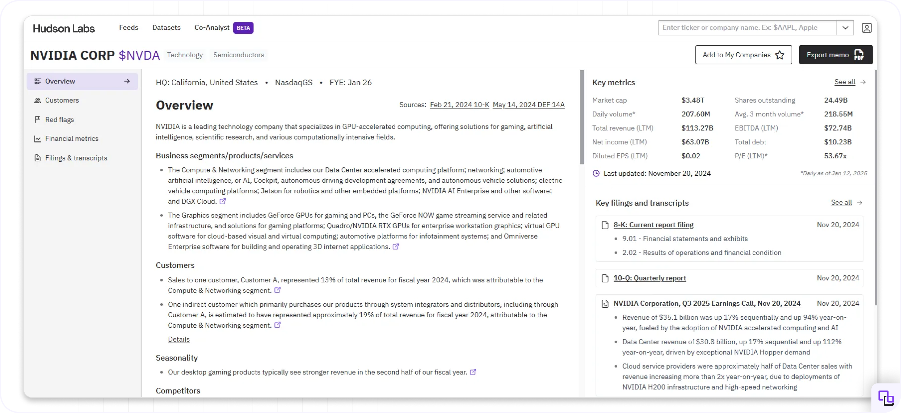 The Co-Analyst is a powerful AI tool built for institutional equity research. It can consolidate insights from disparate data sources, generating answers faster and more reliably than any other chatbot out there. It can analyze SEC filings, earnings calls, earnings presentations, and press releases to extract structured insights within seconds. All with no hallucination because of our industry-leading AI infrastructure. Book a trial to try out the Co-Analyst and more: