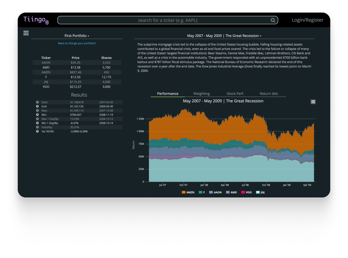 Tiingo offers free screening and portfolio monitoring. Tiingo is best known for its API. The paid version of Tiingo costs $30/mo.