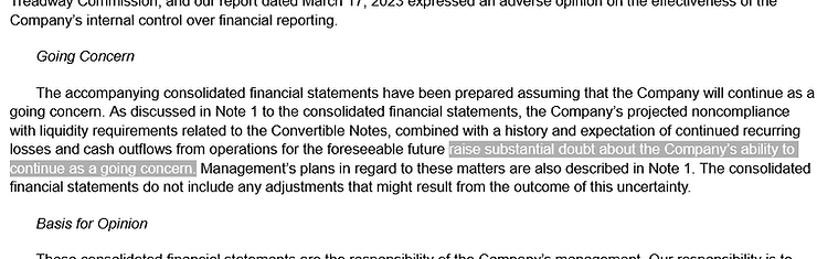 Example of a going concern warning (substantial doubt about going concern)