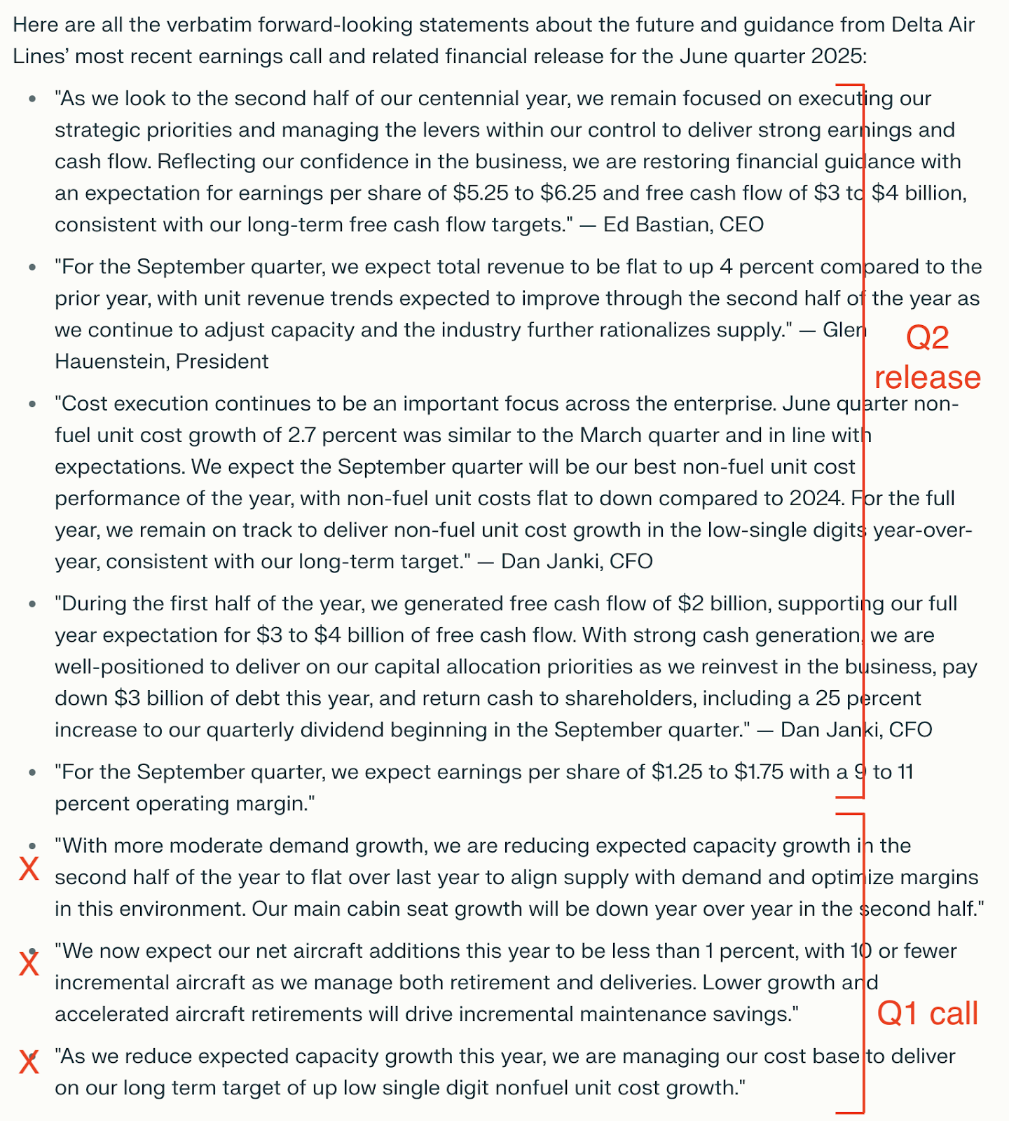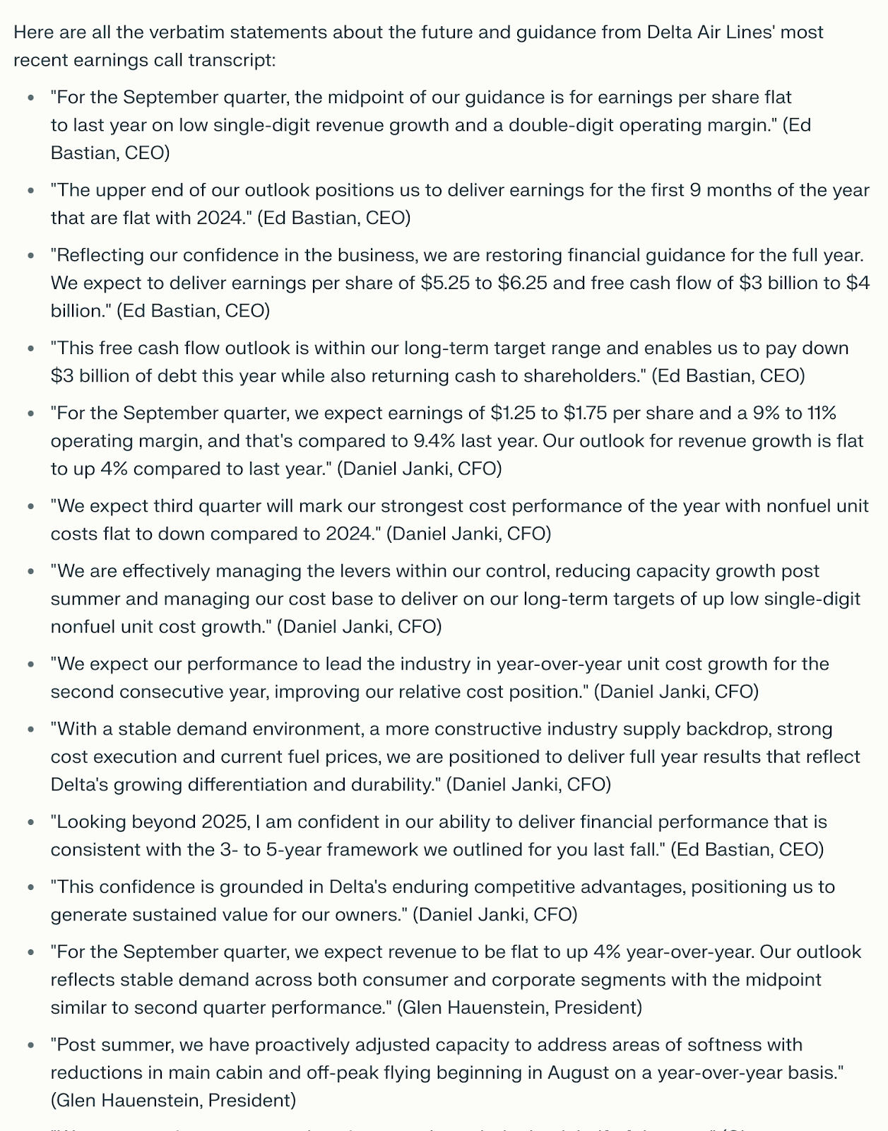 Perplexity returned quotes from press releases instead of the earnings call and included statements from the prior-quarter call. It also missed multiple significant guidance statements, including: