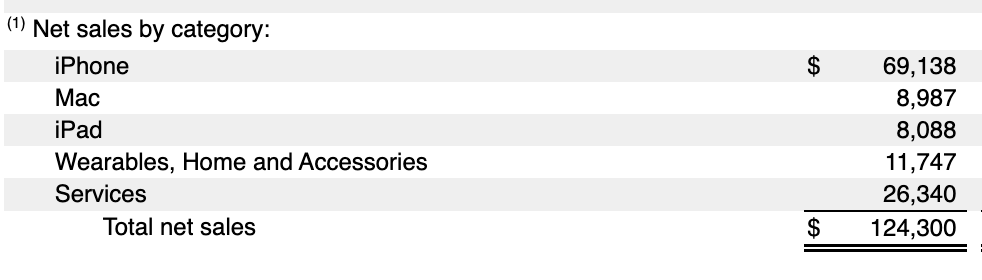 Here’s Apple’s Q1 2025 revenue breakdown by product category from the earnings press release.