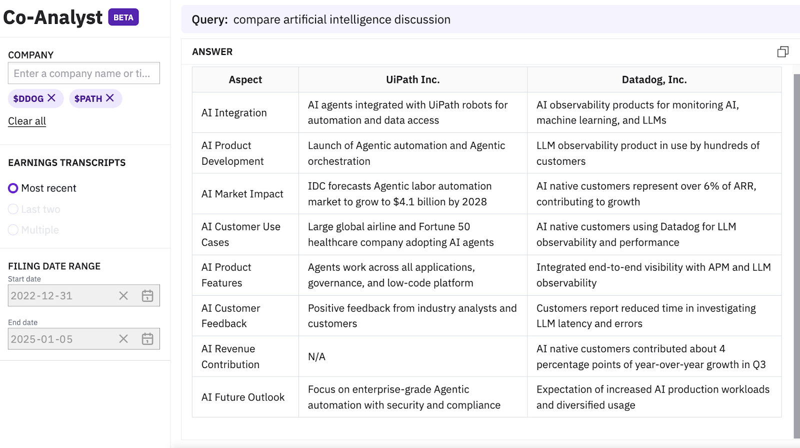 Datadog $DDOG has quantified AI contribution to its revenue, while UniPath $PATH only provided qualitative discussions.