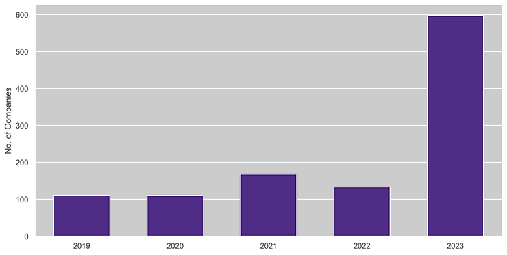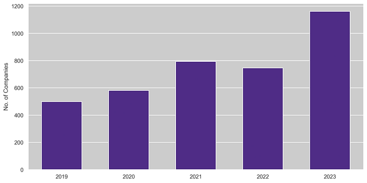 In 2019, only 499 companies mentioned AI in their prepared statements compared to 1161 companies in 2023.