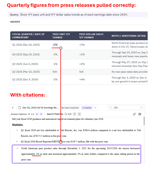 Buyside AI Reviews also tested the Co-Analyst’s ability to extract unstructured data across many documents: